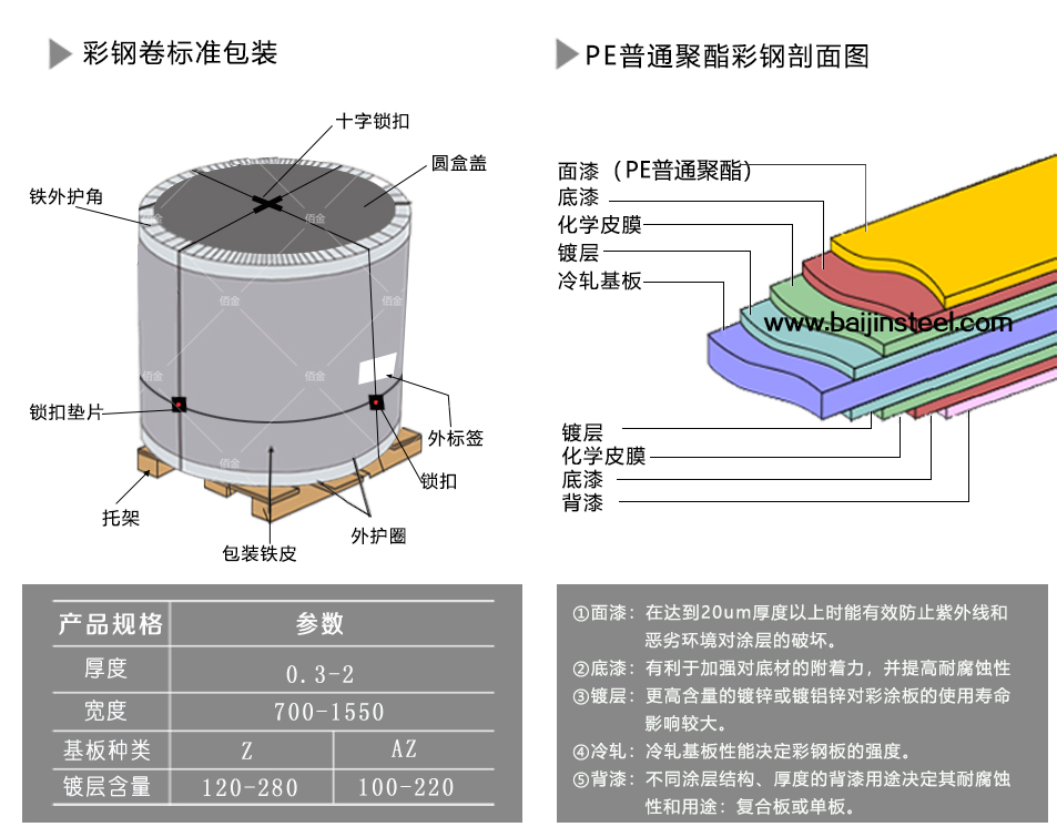 注:本網(wǎng)站數(shù)據(jù)部分來源寶鋼彩涂板企業(yè)標(biāo)準(zhǔn)BQB/440 -2014 ,寶鋼彩涂板產(chǎn)品手冊,及工程案例。