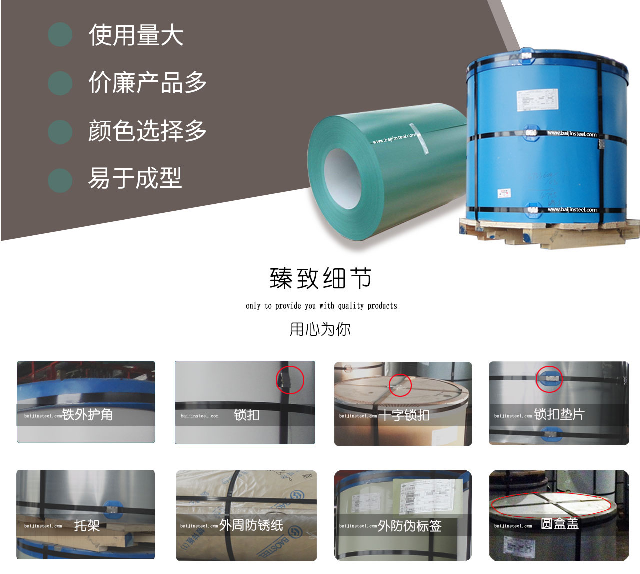 PE涂料對于材質(zhì)有良好的附件著性,彩涂鋼板易于加工成型,價(jià)廉且產(chǎn)品多,顏色和光澤的選擇余地大。在一般環(huán)境直接曝露下,基防蝕年可長達(dá)7-8年,但于工業(yè)環(huán)境或污染嚴(yán)重的地區(qū),其使用壽命會相對降低,且聚脂涂料對耐紫外光性與涂膜耐燁化性,并不理想,因此PE涂料的使用仍受到若干限制,一般用在空氣污染不嚴(yán)重的地區(qū)或需多次成型加工的產(chǎn)品。寶鋼P(yáng)E聚酯彩涂板在一般環(huán)境下具有7年的質(zhì)保年限。